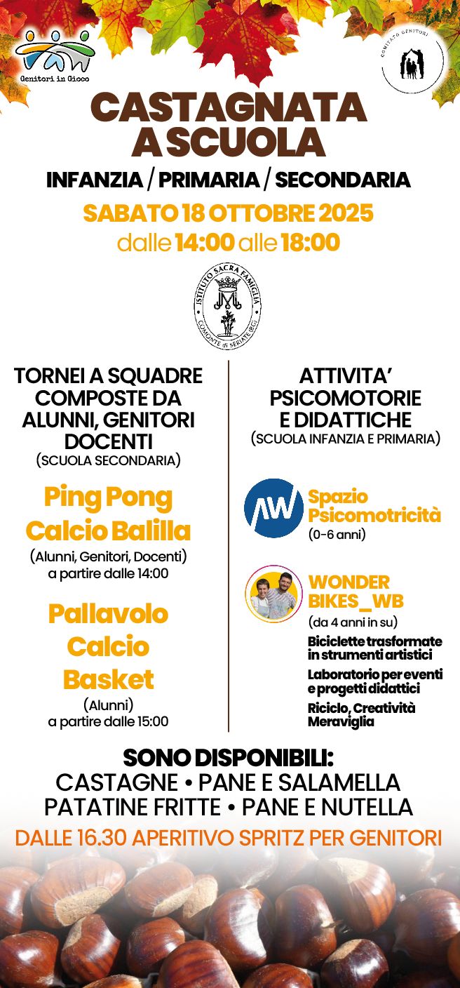 Sabato 18 ottobre 2025 dalle ore 14.00 alle 18.00 vi aspettiamo per giocare, sfidarci in tornei di calcetto, ping pong, pallavolo, basket e calciobalilla con squadre formate da ragazzi, genitori, docenti della Scuola Secondaria di I grado.