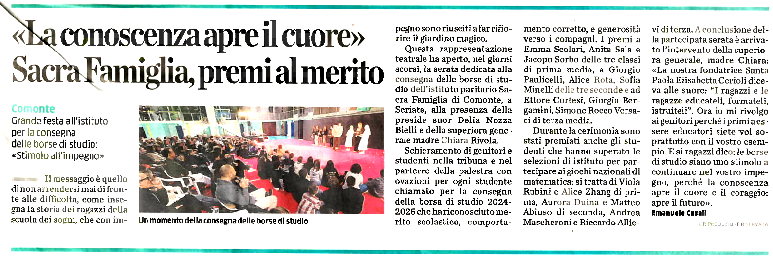 Al termine si è tenuta la consegna delle nove borse di studio ai migliori studenti dell’a.s. 2024-2025 e gli alunni che hanno superato le selezioni delle gare di matematica.