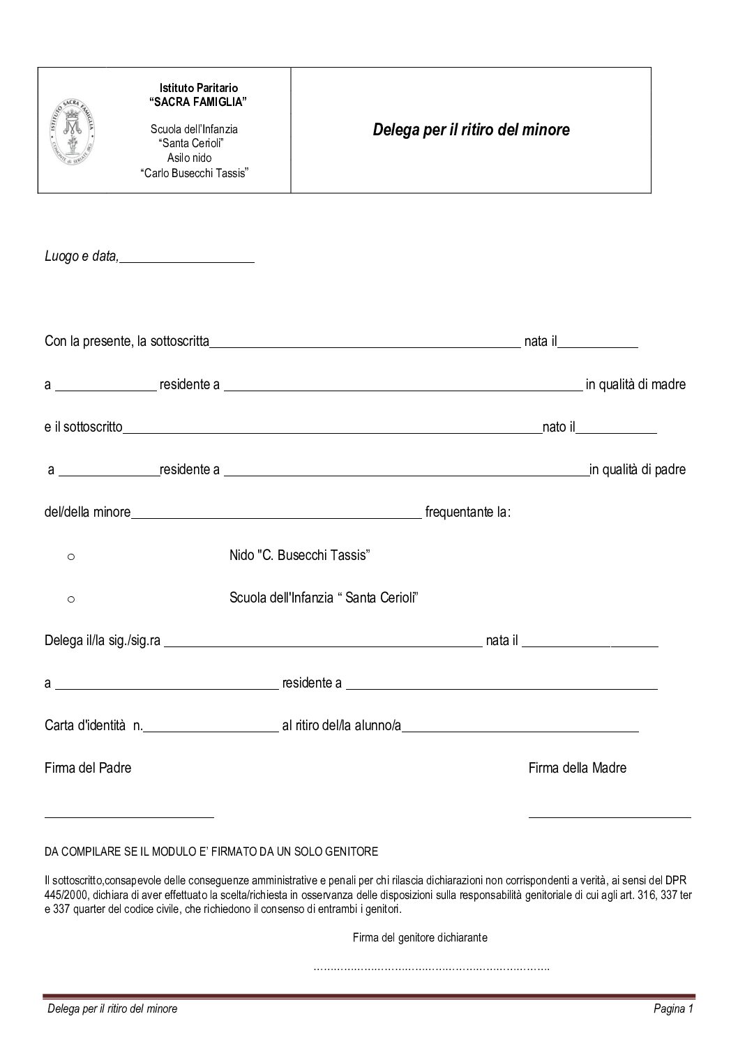 Delega per il ritiro del minore
