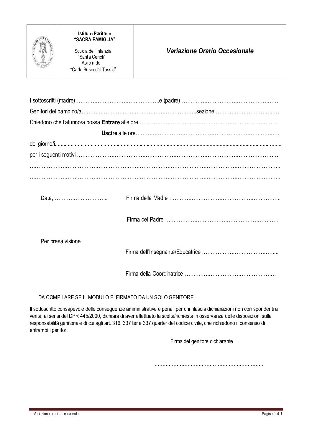 Variazione orario occasionale